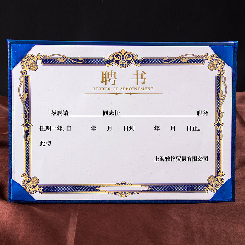 Ya Zi horizontal A4 letter of appointment European creative frosted pearlescent red Blue letter of appointment Appointment appointment appointment appointment book cover shell custom custom inner core Inner page typesetting and printing