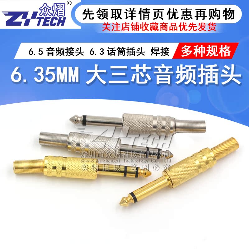 6 35MM big three-core two-core microphone 6 5 audio connector microphone plug mono stereo welding