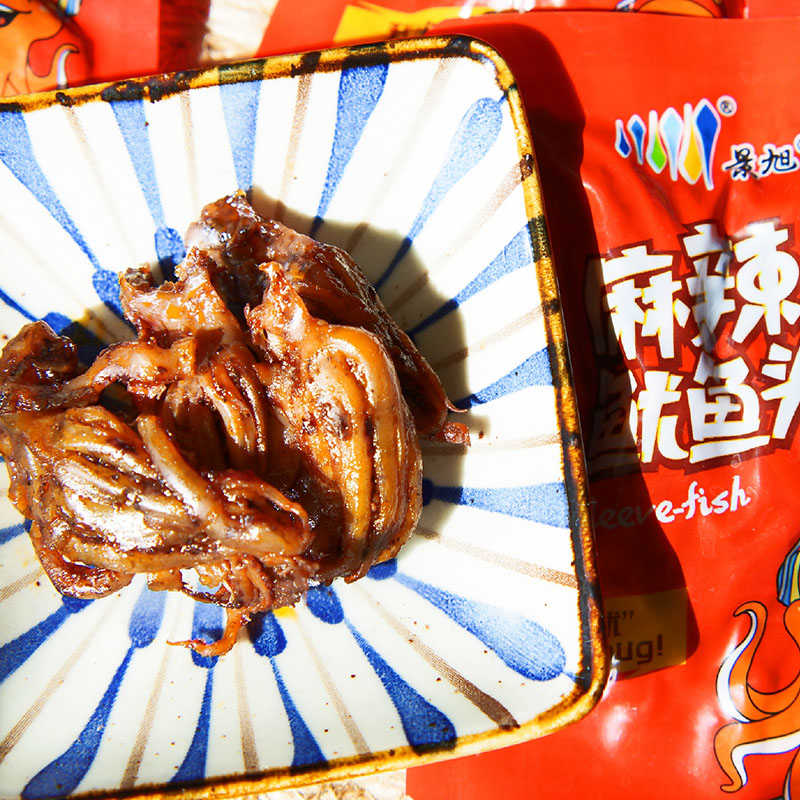 Spicy squid head whiskers ready-to-eat small seafood snacks dried cuttlefish larvae now roasted iron plate incense Yantai Qingdao specialty Jing Xu