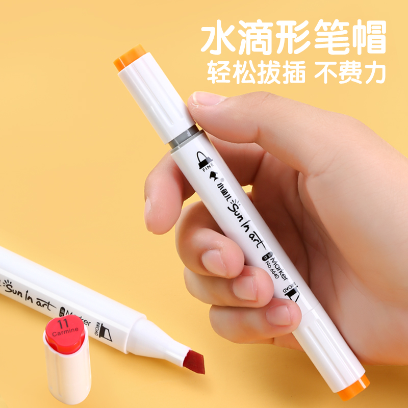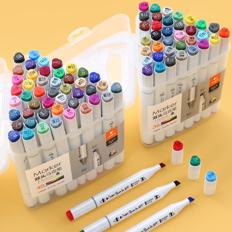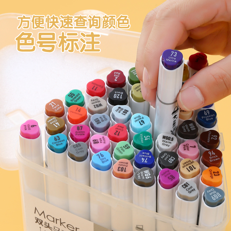 Small fish oily double-headed marker pen hand-painted design set student triangle rod marker boxed animation painting stationery triangular color pen coloring brush 12 24 36 48 colors