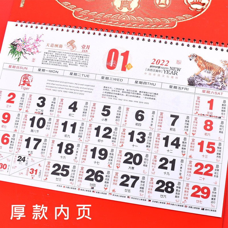 Gold Leaf Fu Character Hang Calendar 2022 Tiger Year Hang Calendar Customized Enterprise Insurance Company Advertisement Gift Set For Home Hanging Wall China Wind Yellow Calendar Hand Ripping Calendar Lunar Calendar Ripping Calendar Creative Hangar