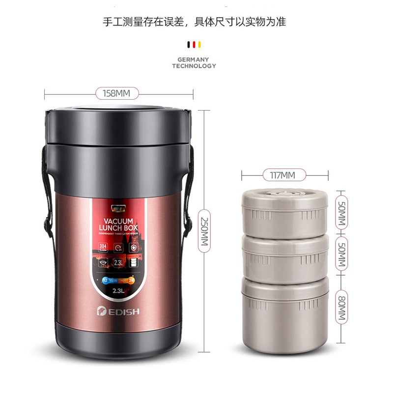 German EDISH insulation lunch box barrel 304 stainless steel vacuum ultra-long insulation adult student 3-layer lunch lunch box