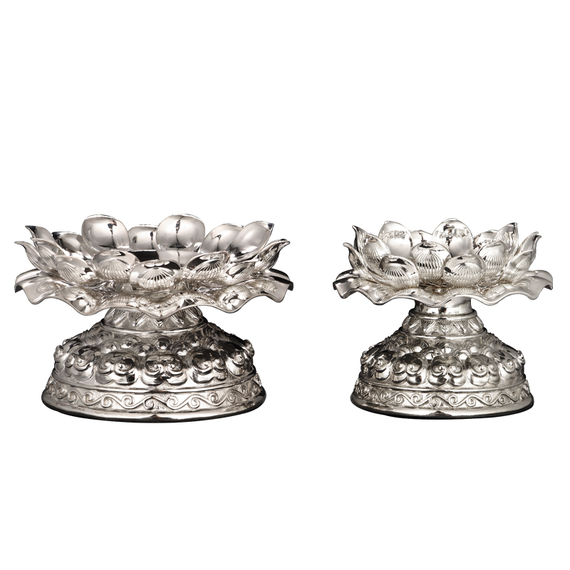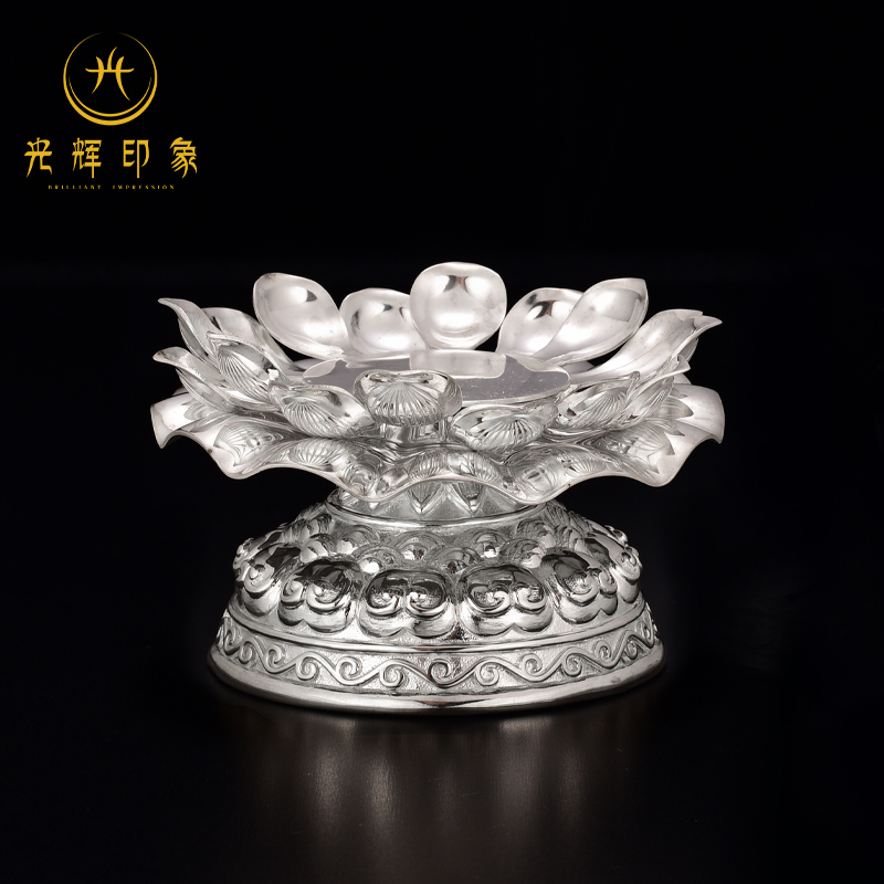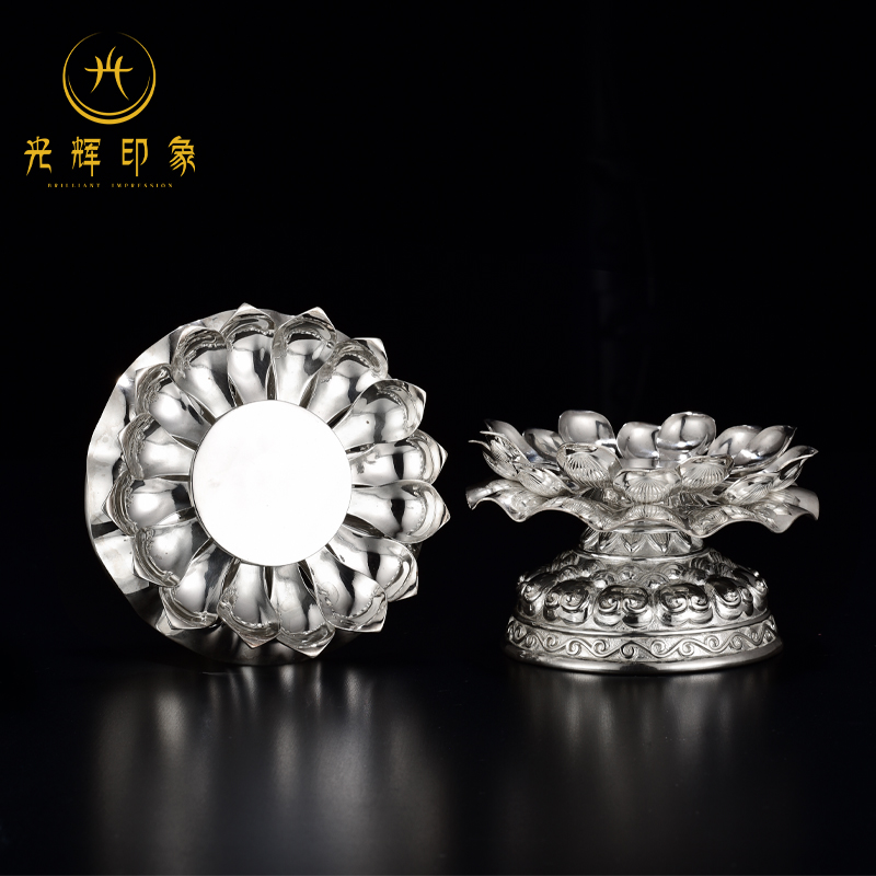Tibetan Buddhism S990 sterling silver Anemone table table dedicated to Buddha foot silver Tantric round lotus ornament lamp base
