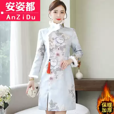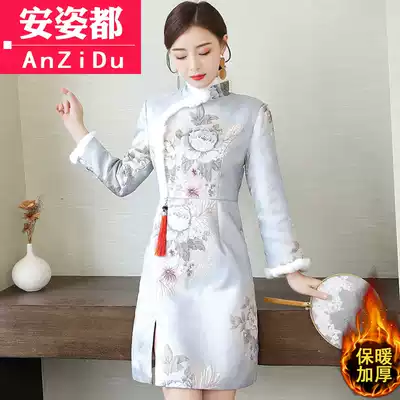 Winter cheongsam women thick cheongsam skirt autumn winter Chinese style young girl long version improved dress