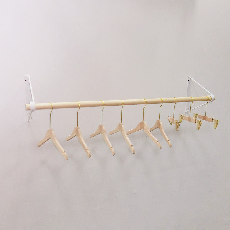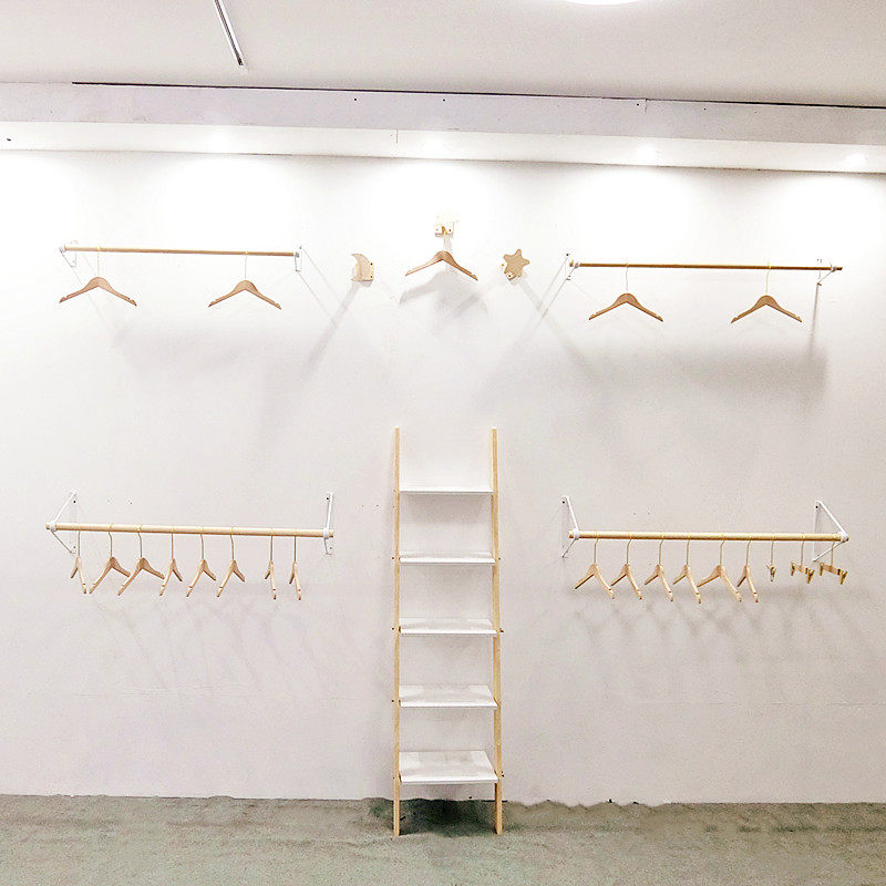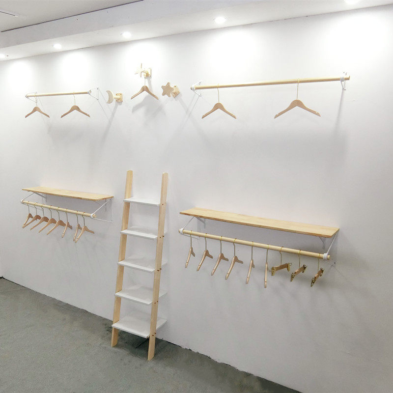Clothing store children's clothing display stand solid wood on the wall children's clothing log color clothes rail women's clothing store front side hanger