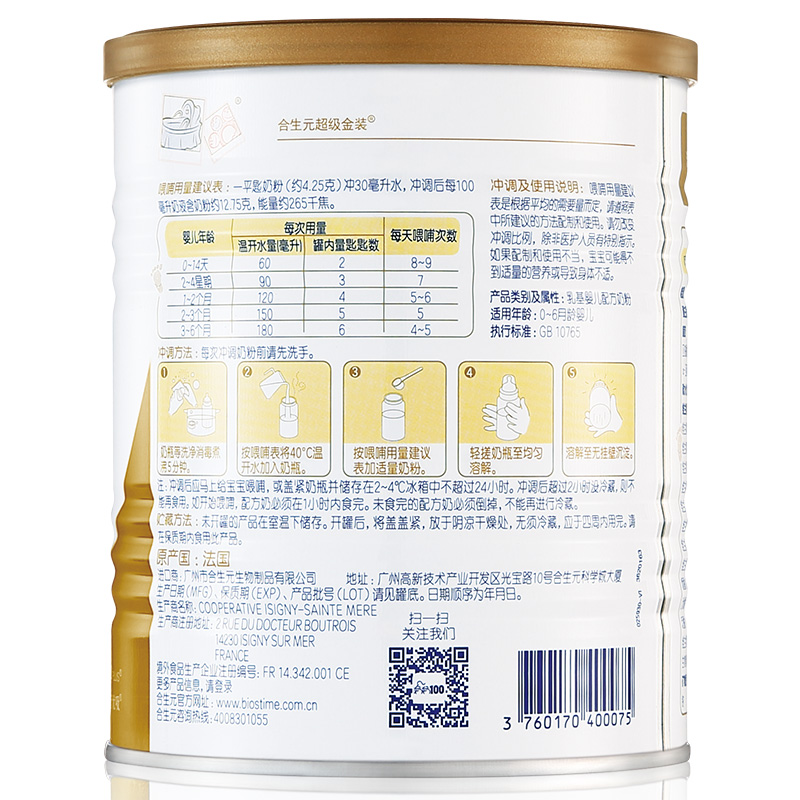 Hopson Yuanpaixing Super Gold 1-stage infant newborn milk powder 0-6 months infant imported small cans 400g