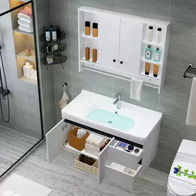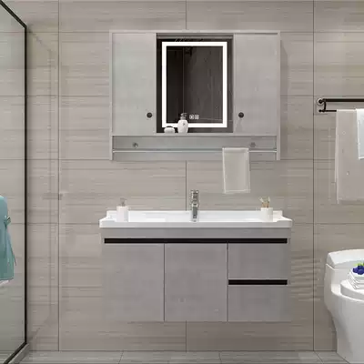 Solid Wood Nordic smart mirror feng shui mirror bathroom cabinet hidden mirror cabinet combination wash table powder room washbasin cabinet