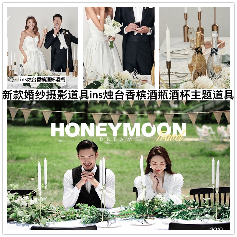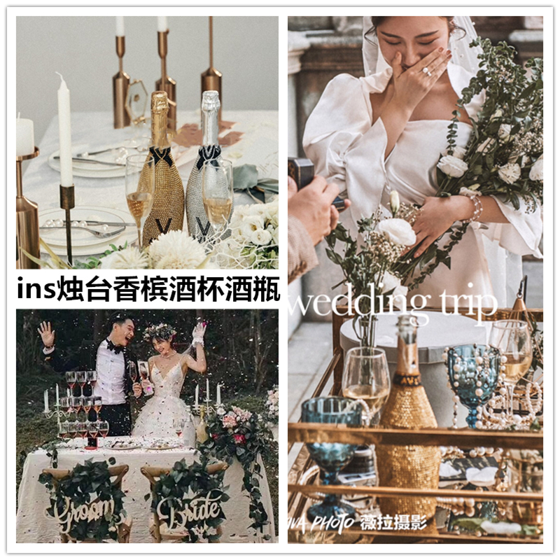 ins wind senssen department shooting inlaid drill champagne bottle photo gallery photo high foot cup wedding photography props scenery iron table and chairs