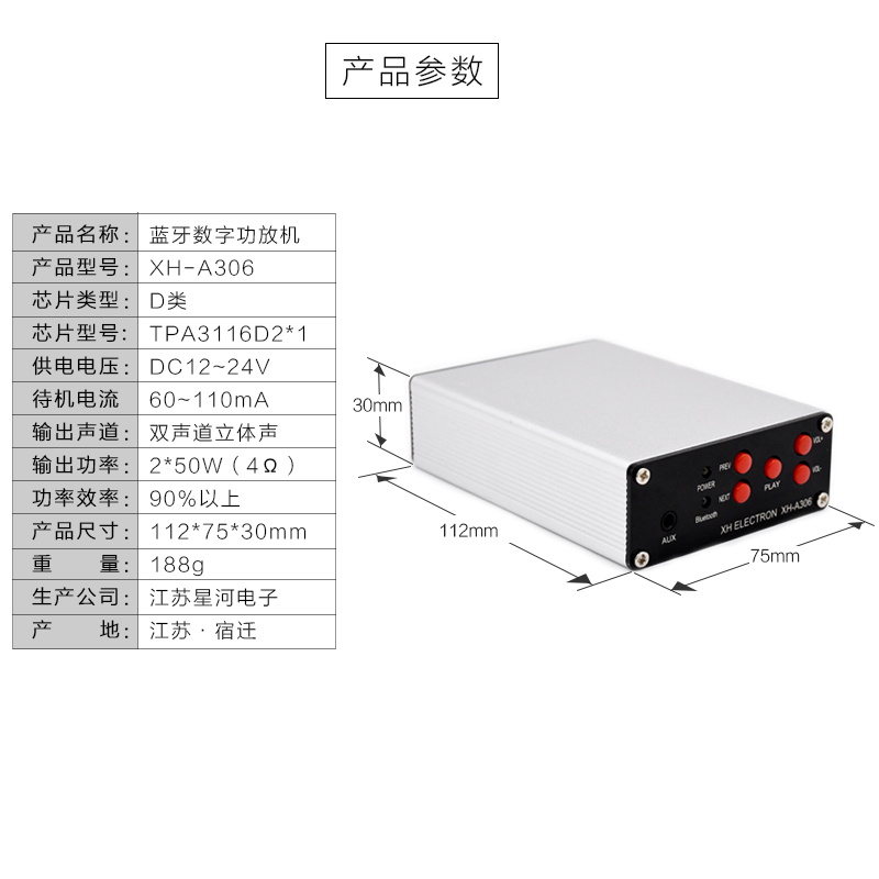 XH-A306 Bluetooth 5 0 Digital power amplifier micro DC power amplifier board TPA3116D2 Bluetooth AUX amplification