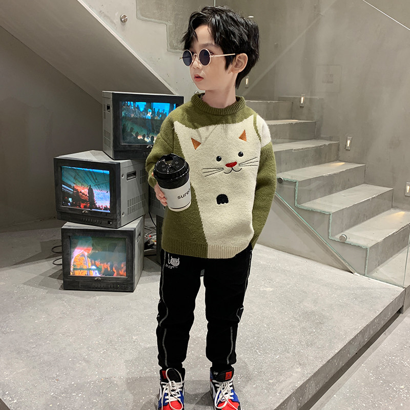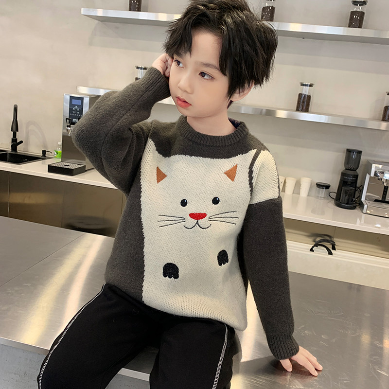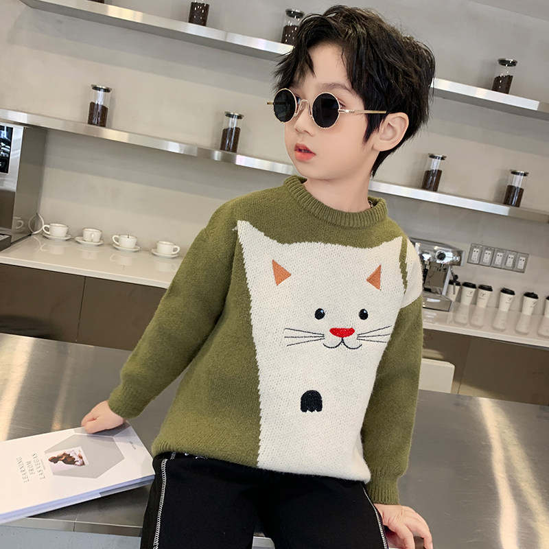 Boys autumn and winter thick sweater children handsome Korean version of warm base shirt in the big boy Joker 2020 New Tide