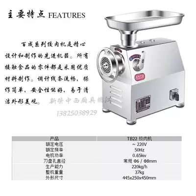 Baicheng TB22 commercial electric meat grinder Stainless steel meat grinder type 22 blade propeller meat orifice plate accessories