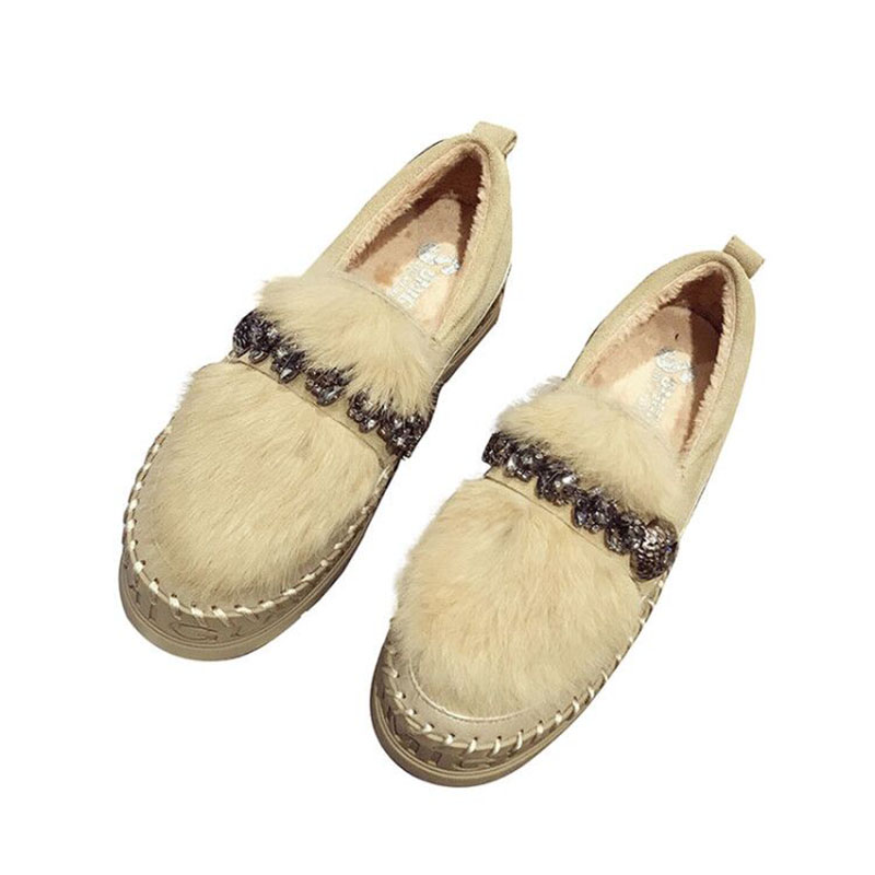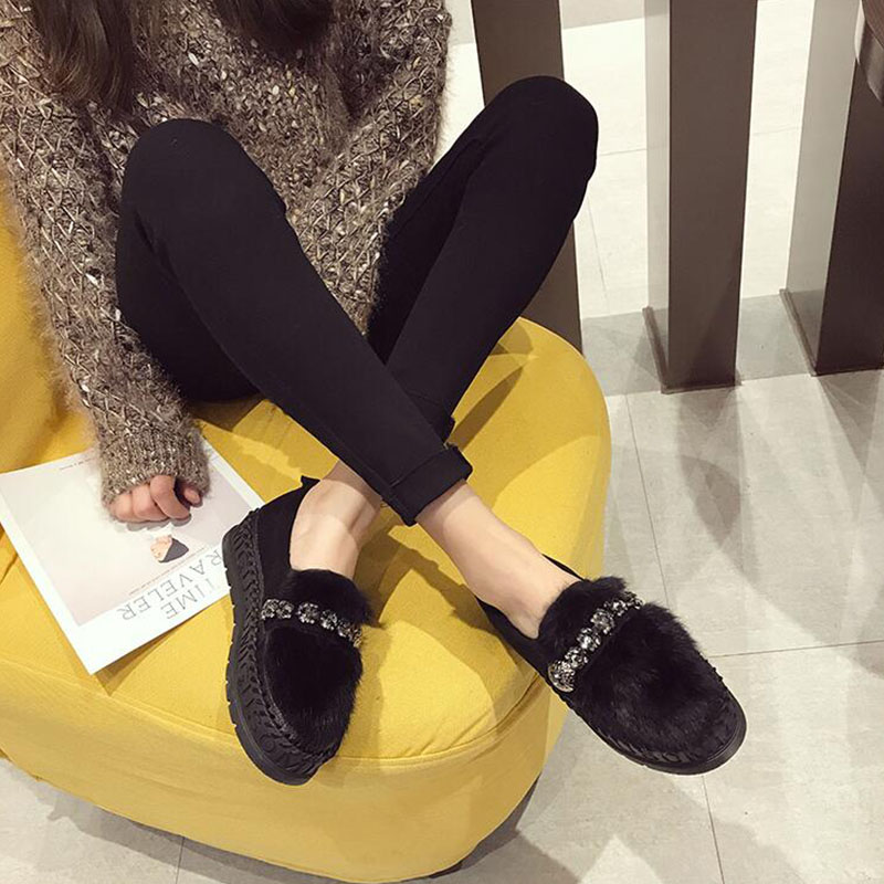 South Korean genuine leather water drill flat bottom fur shoes 2023 autumn and winter new one foot pedal thick bottom 100 lapped heightening muffin shoes woman-Taobao