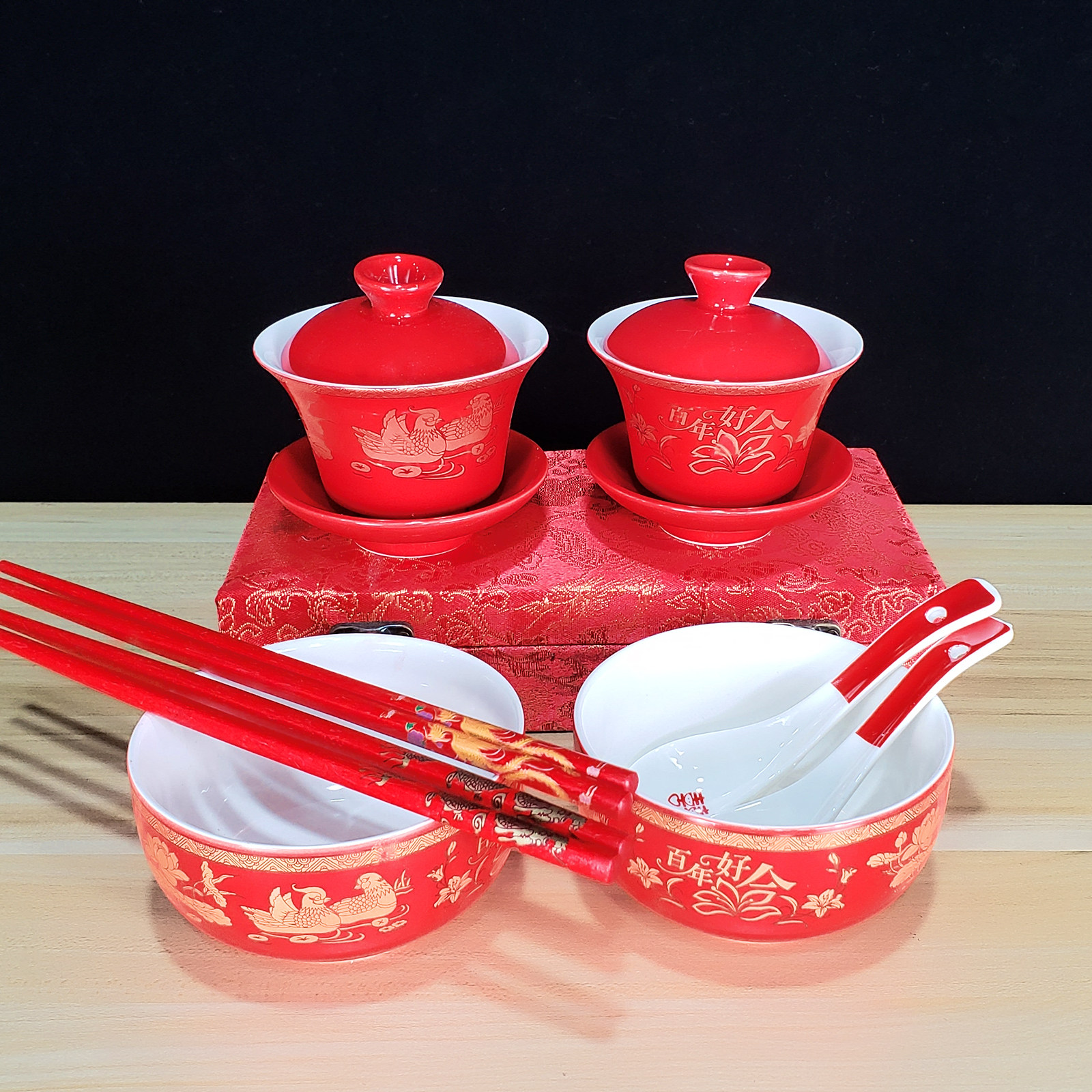 1 pair of dolls double happiness bowl 1 pair of mandarin ducks double happiness bowl 1 pair of roses double happiness bowl 1 pair of century-old match cup 1 pair of dolls double happiness cup 1 pair of mandarin ducks double happiness cup 1 pair of roses double happiness cup
