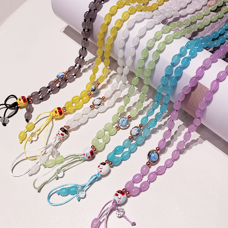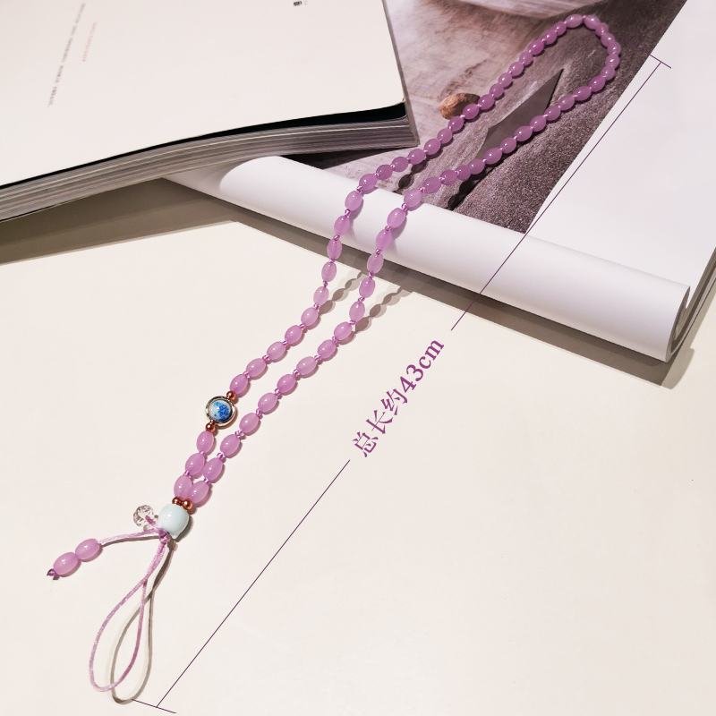 Mobile phone hanging rope Girl hanging neck hand-woven Chinese wind emerald jade pendant hanging decoration crystal beads wrist applicable apple x Huawei oppo pendant sling transfer anti-loss documents with body rope chain