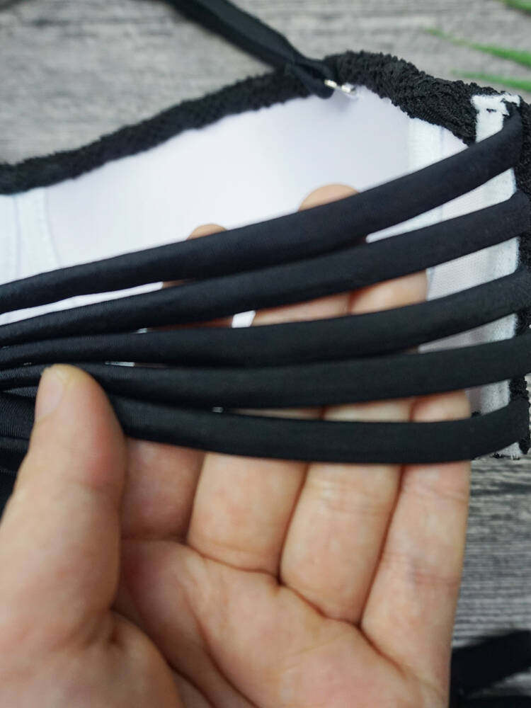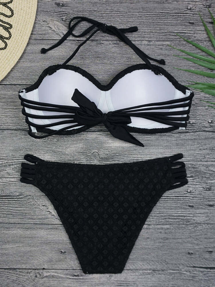 bikini swimsuit thin cup steel tray seaside knitted Korean sexy black new bandeau big chest bikini swimsuit