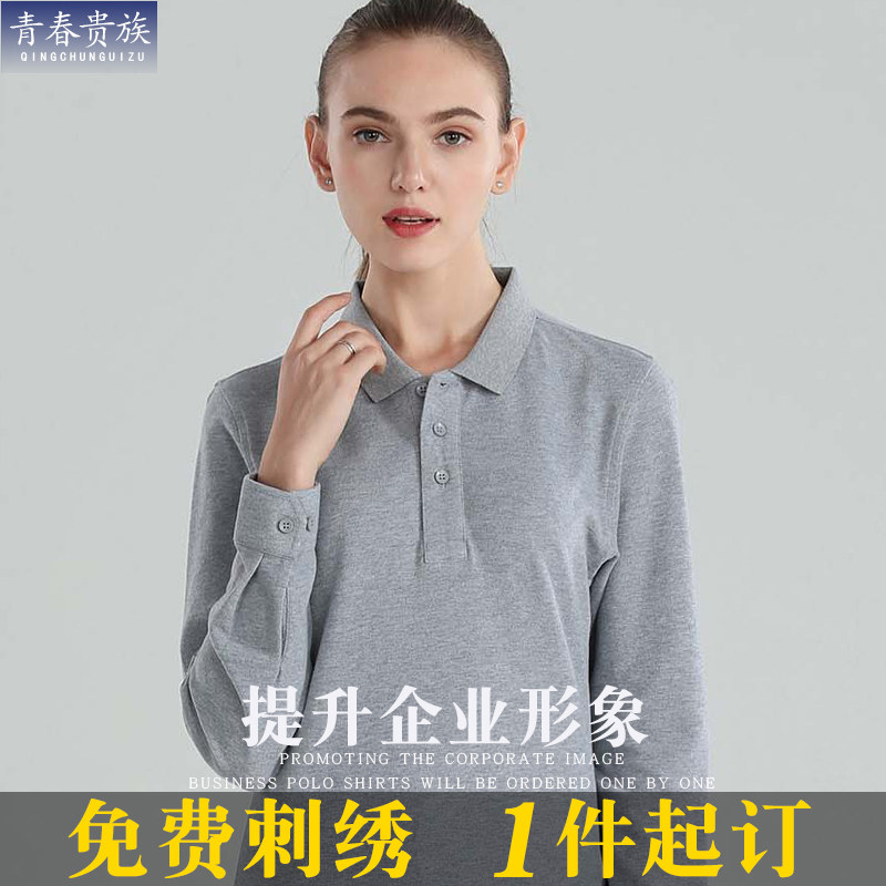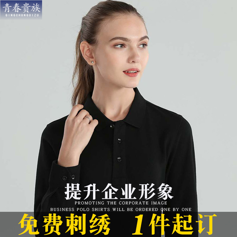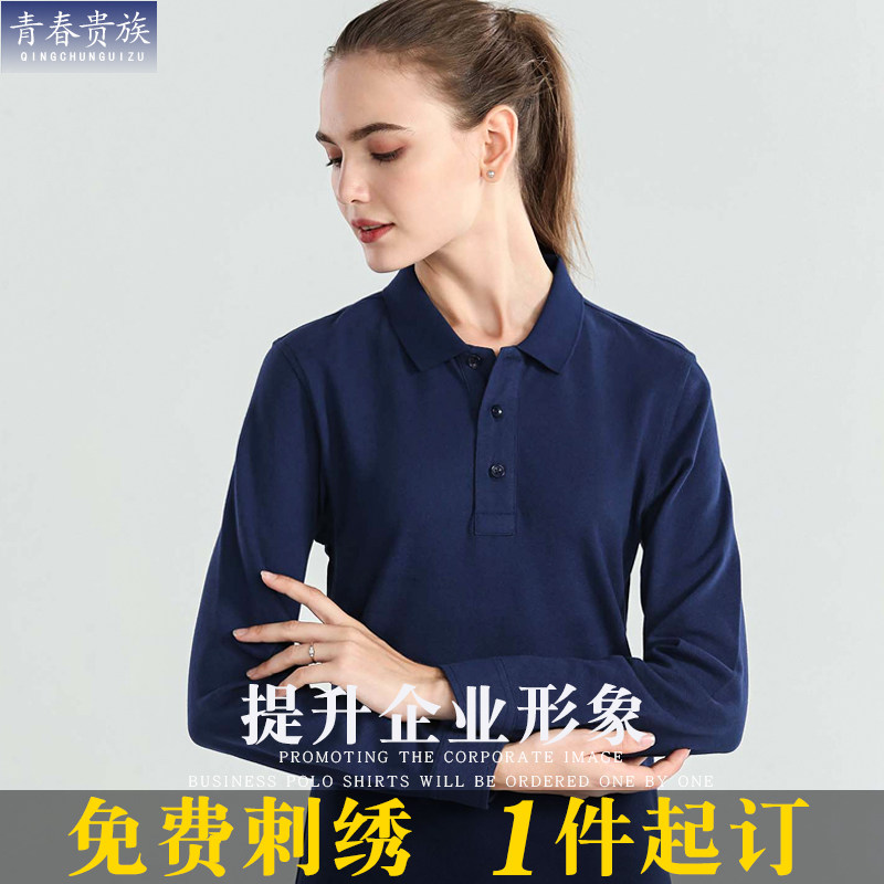 Autumn-winter turning over long sleeves T-shirt with increased code casual POLO shirt working clothes custom print LOGO