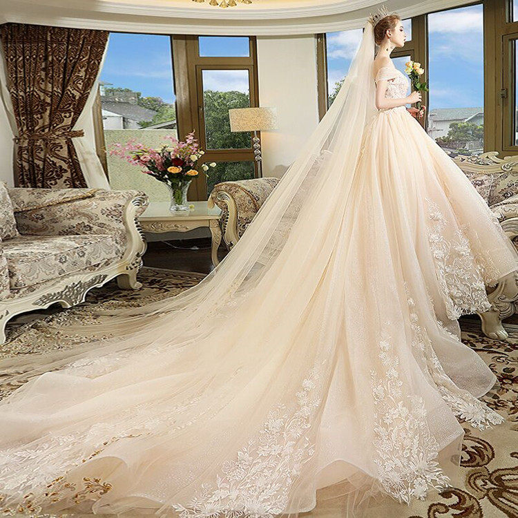 Bride headdress header Sen drag tail 3 meters soft dress props super fairy married light champagne veil