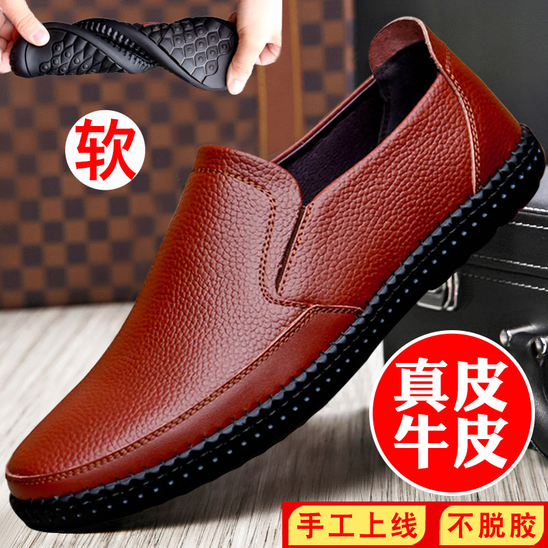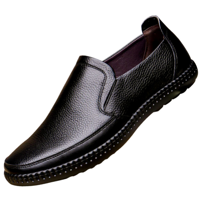 Men's Casual Leather Shoes Men's Shoes Autumn Dad Soft Leather Super Soft Sole Slip On New All Black Leather Tide Shoes