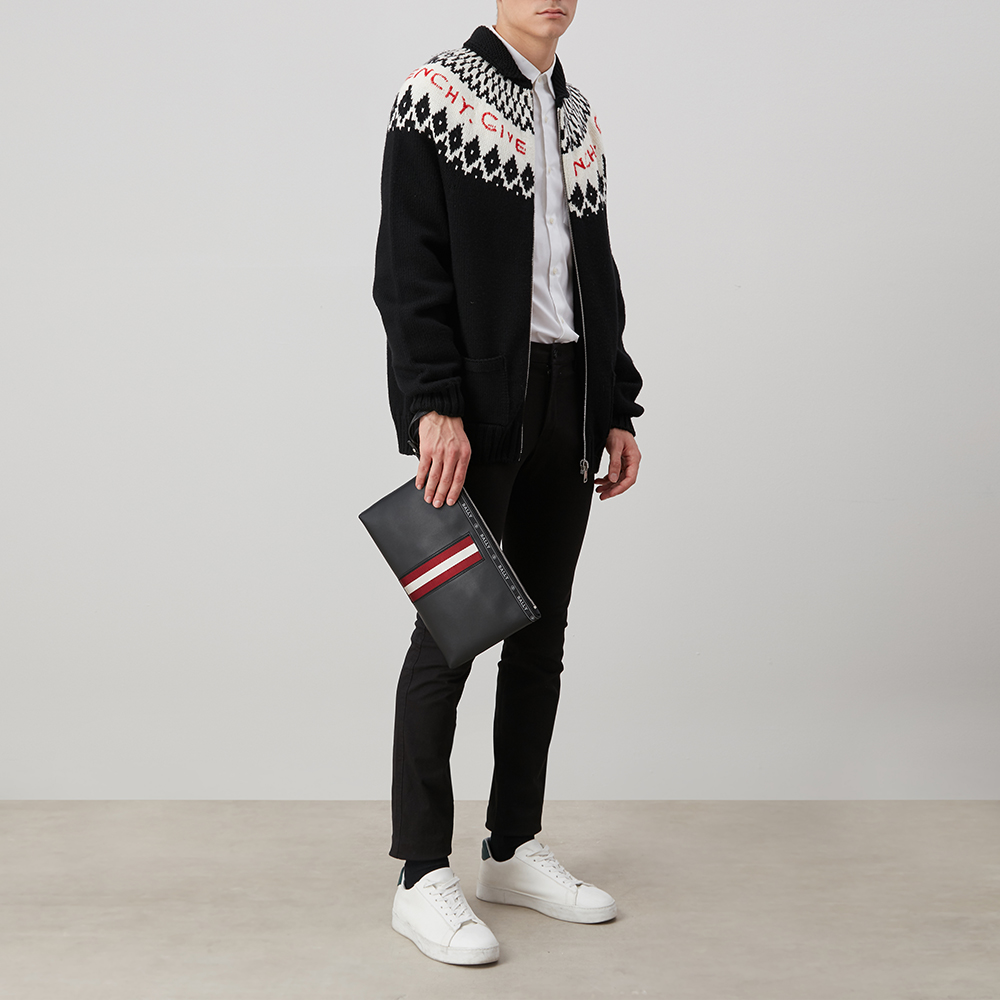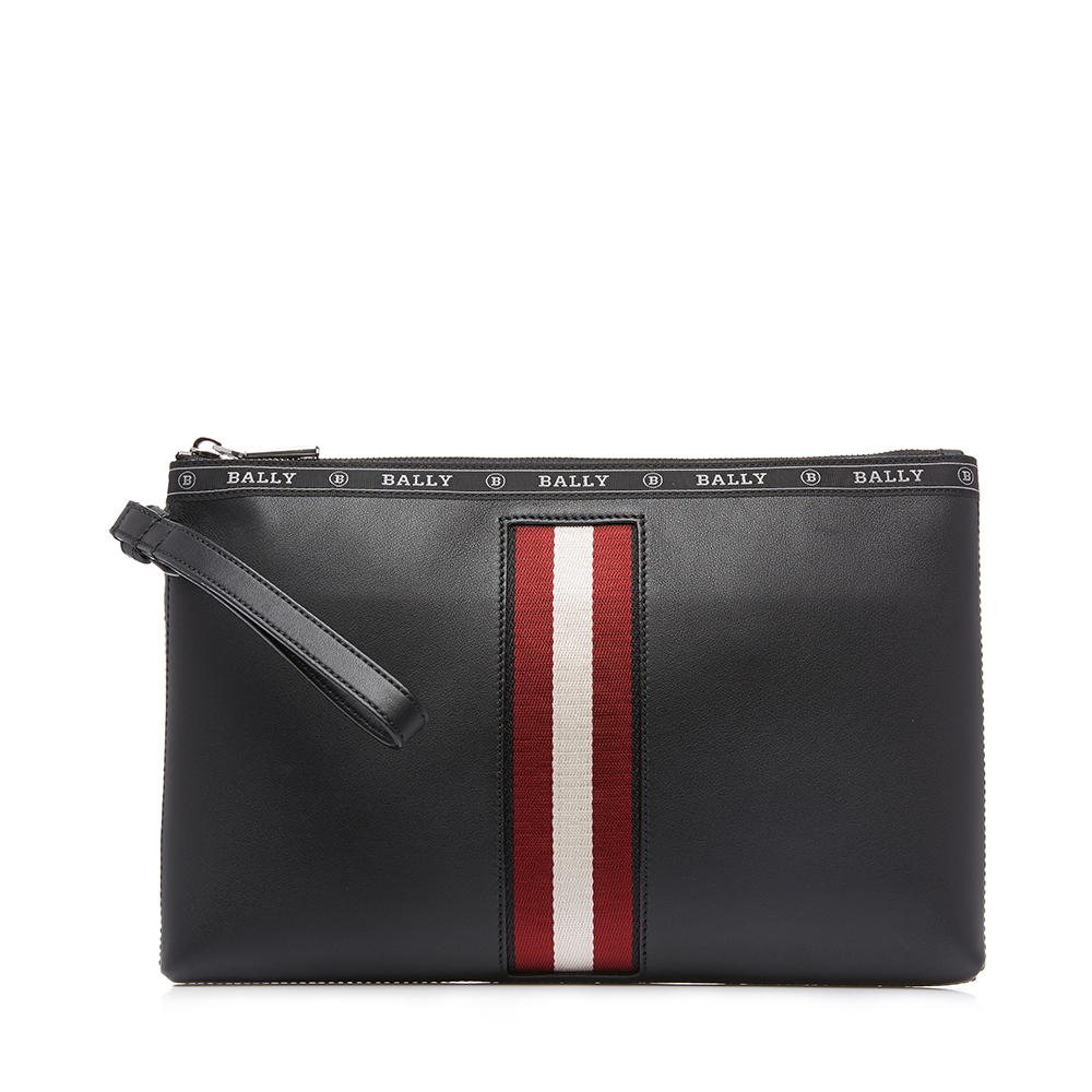 BallyHighpoint Black Bull Leather Striped Webbing Classic Hand Carrying Bag Man Bag