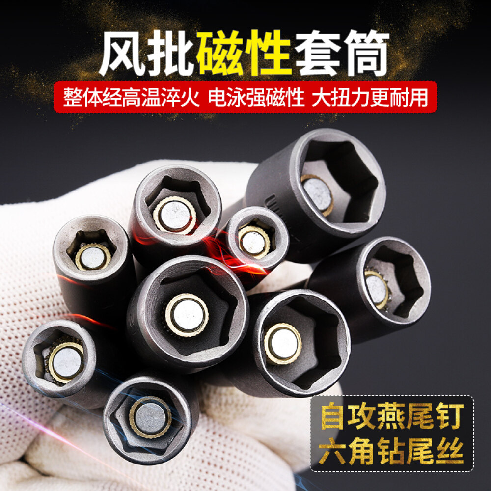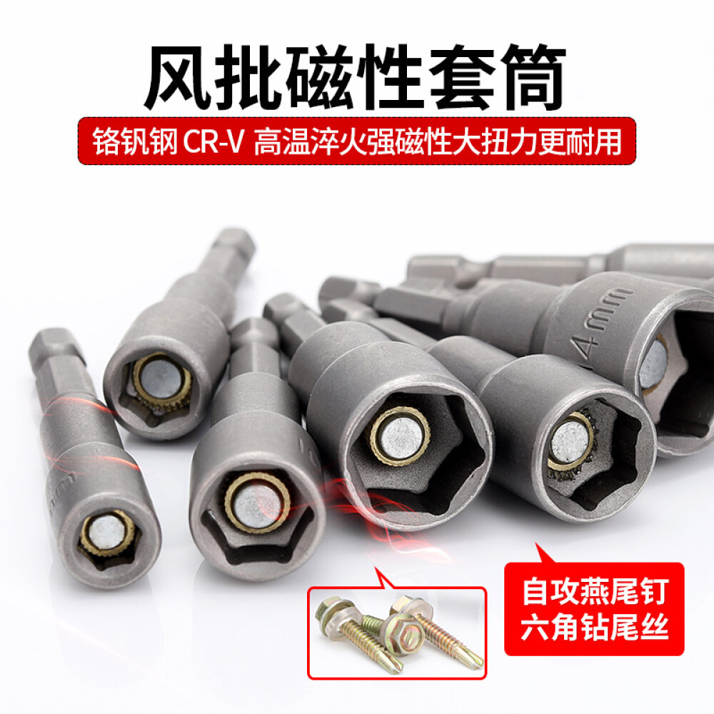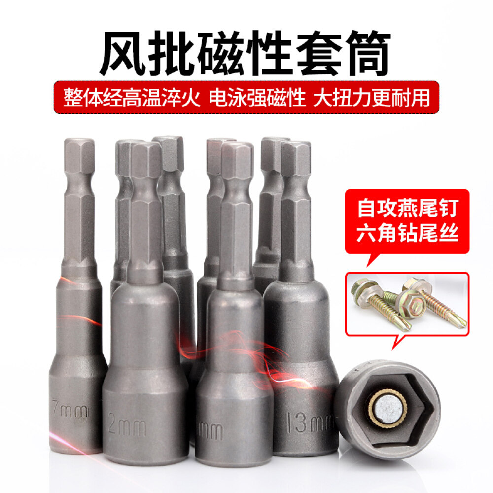 Chrome vanadium steel magnetic hex socket head Dovetail self-tapping screw screwdriver head Self-colored steel tile extended sleeve Pneumatic screwdriver head