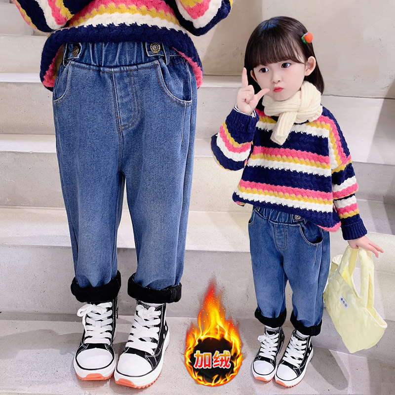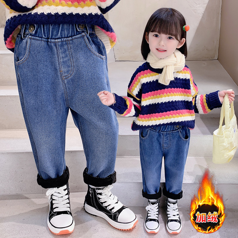 Integrated suede Daddy pants smiling face plus suede jeans yc large pocket jeans black (spring autumn money) yc large pocket jeans blue (spring and autumn)