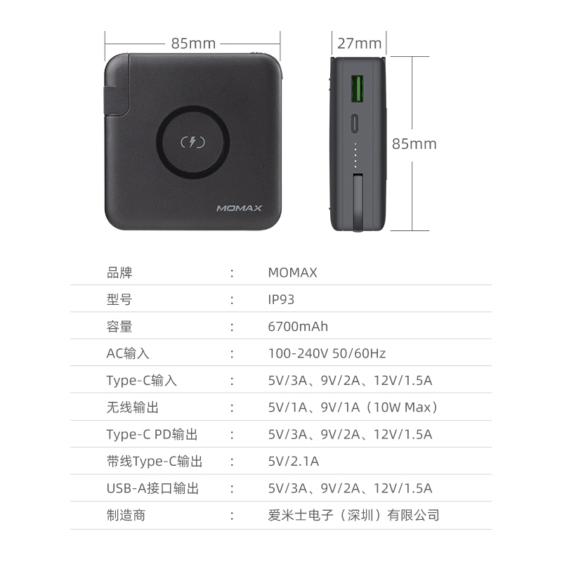 MOMAX Momis wireless charger mobile charging 2-in-1 compact portable power bank 6700 mAh suitable for Huawei Apple