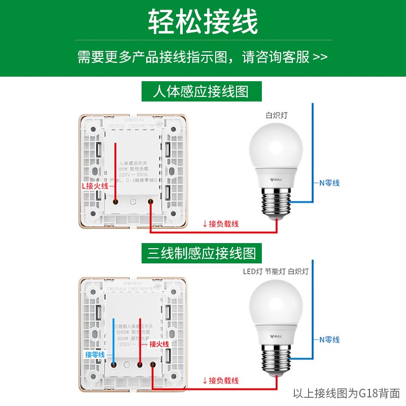 Two-wire human induction switch (only incandescent lamps available, energy-saving lamps below 20W available) Three-wire control all lamps need to be connected to zero line White Three-wire control all lamps need to be connected to zero line Gold Three-wire control all lights need to be connected to zero line gray Three-wire control all lights need to be connected to zero line white (with bottom box open) Three-wire control all lights need to be connected to zero line gold (with bottom box open) Three-wire control all lights need to be connected to zero line gray (add bottom box open) If you need expansion screws (contact customer service to buy 0.2 yuan separately)