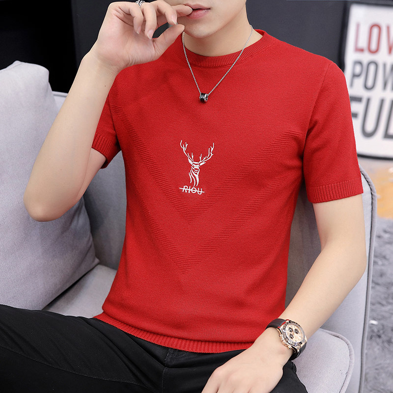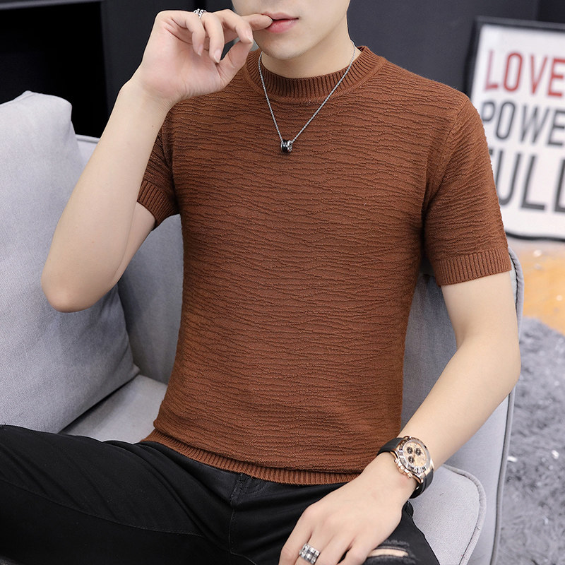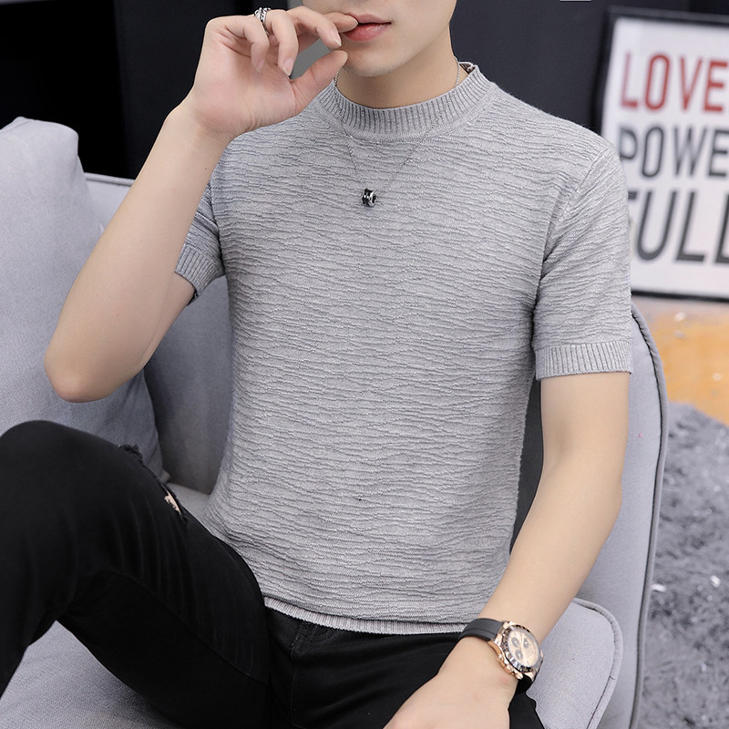 2022 autumn and winter new men's round neck sweater short-sleeved T-shirt Korean version trend half-sleeved sweater bottoming shirt