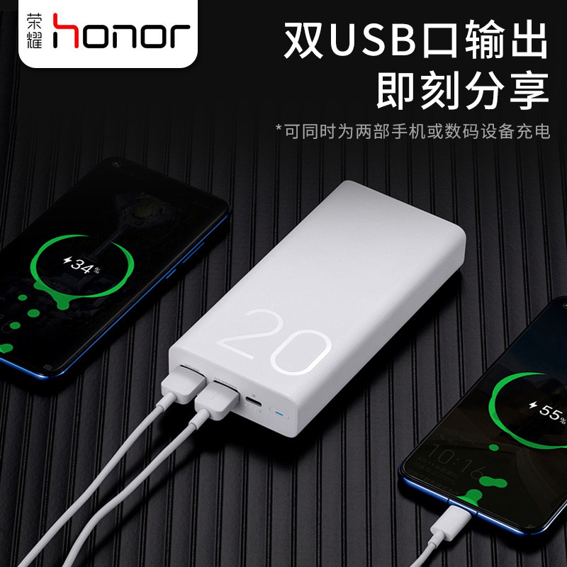 Glory Mobile Charge Large Capacity 20000 mA Mobile Power Supply 2 Super Fast Charge Ultra Thin Portable 18W Bidirectional Fast Charge Adapted to Huawei mate30 40pro Xiaomi OPPO Mobile Phone