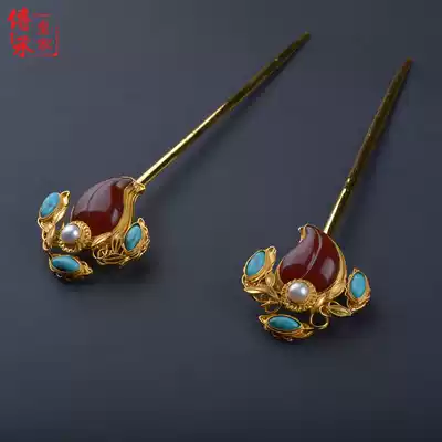Peach-shaped sideburns pair of ancient headdresses Hanfu accessories Palace retro sideburns hair ornaments hairpin