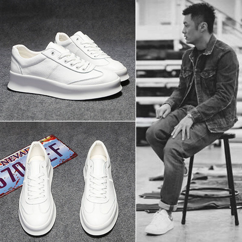Men's shoes sneakers 2022 spring new inner white shoes men's Korean version of the tide brand leather breathable all-match thick-soled casual shoes