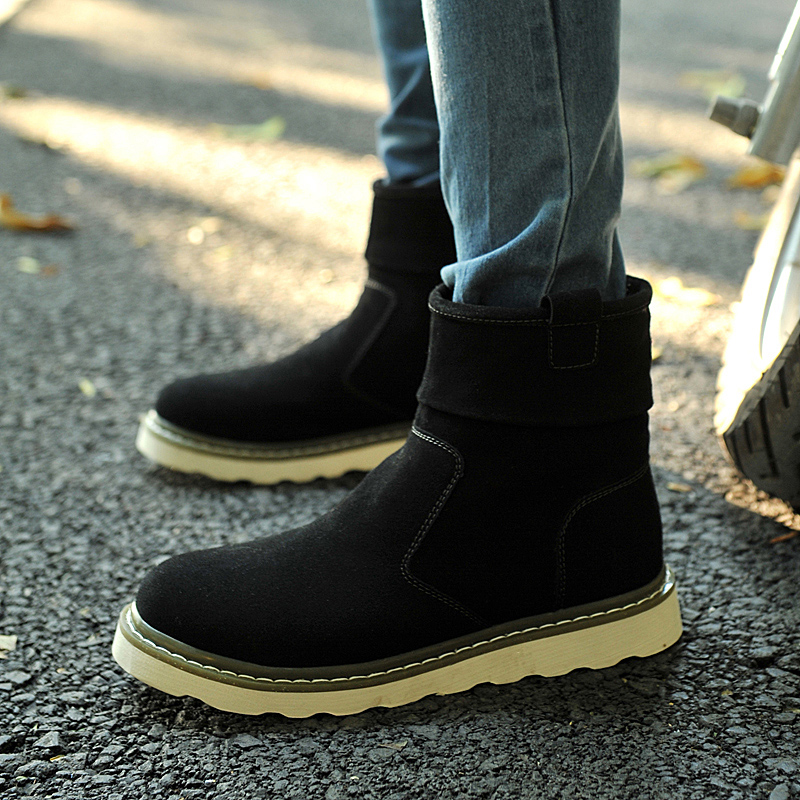 Winter warmth plus suede cotton shoes Men's waterproof men's shoes thickened bread Northeastern men's snow boots One foot pedal Martin boots