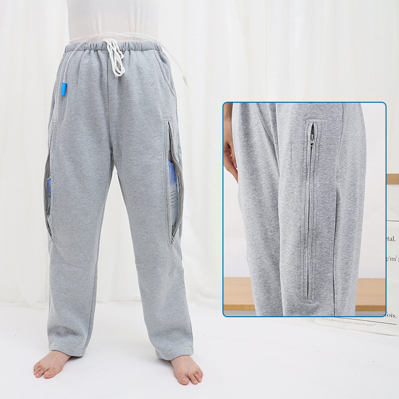 Autumn and winter collection urine bag ostomy pants kidney intestinal urethra anus postoperative drainage elderly patient nursing pants thick