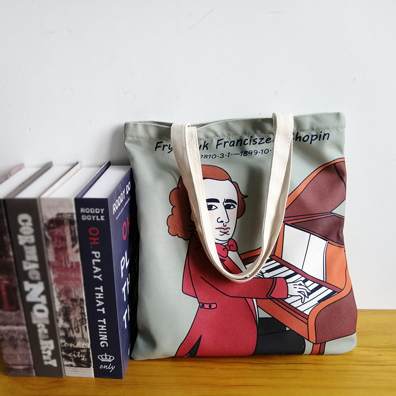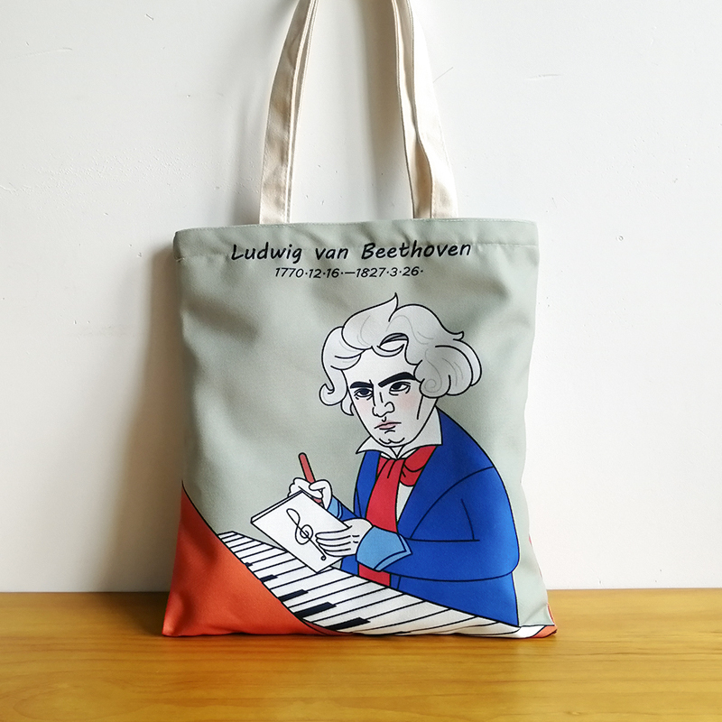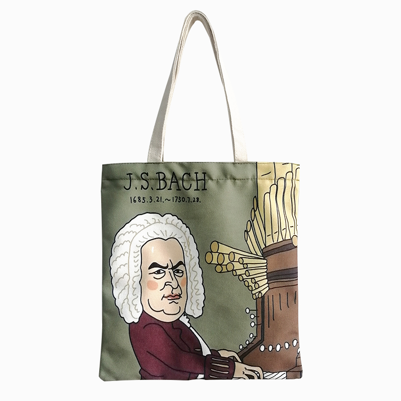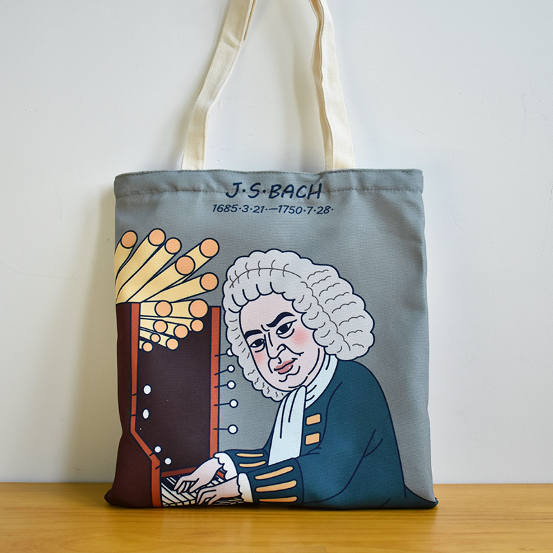World celebrity Bach Canvas Bag Bag Bag Bag Musician Around the Violet Cartoon Playing Piano Single Shoulder Handbag