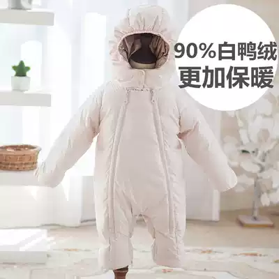 Baby down jacket newborn baby 0-1 year old male and female baby Hug jacket winter even foot white duck down out jumpsuit