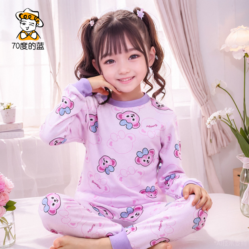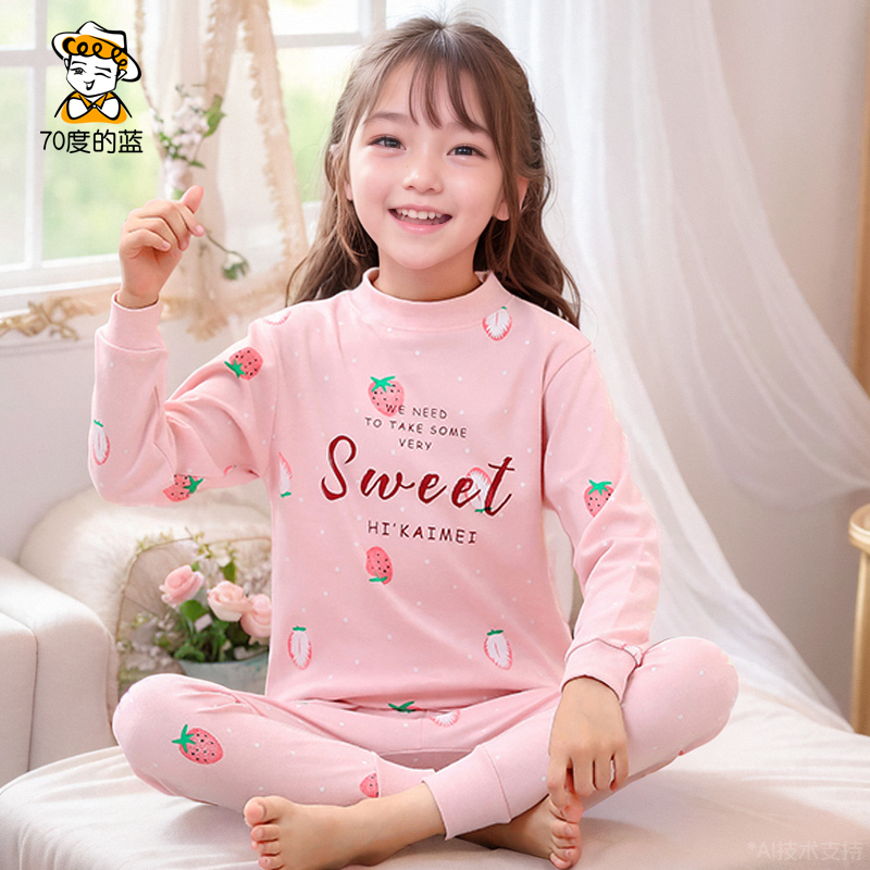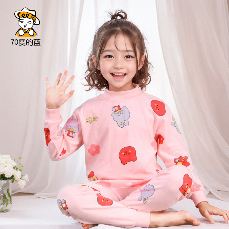 Children's autumn clothes and long pants, pure cotton half turtleneck, girls' cotton sweaters, boys' pajamas, children's baby thermal underwear sets