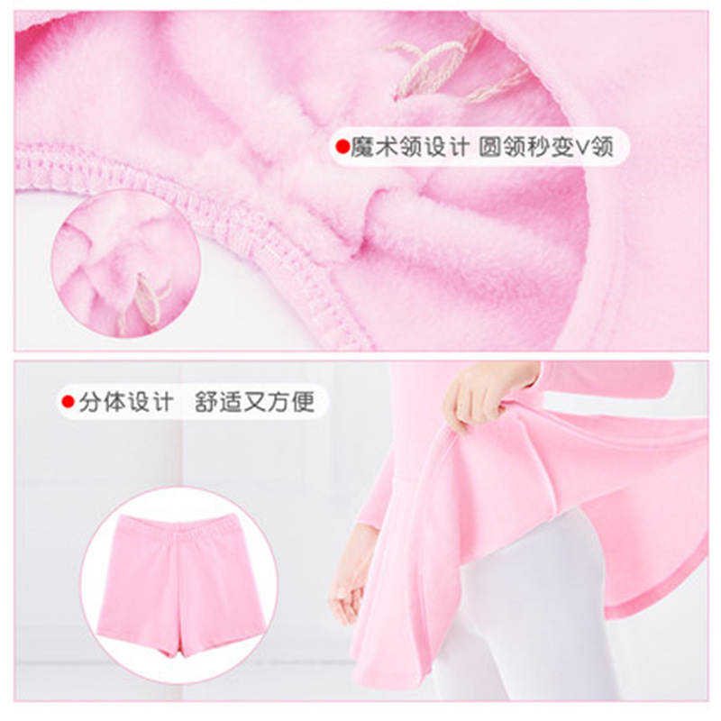 Children's dance clothes long-sleeved exercise clothes plus velvet thick ballet skirt girls dance clothes autumn and winter warm dress