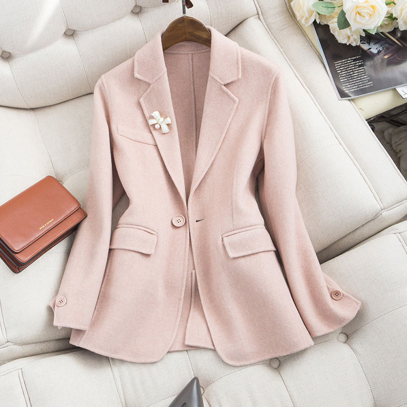 JOLIMENT double-sided cashmere small suit 2022 new bow accessories decorative woolen suit jacket women