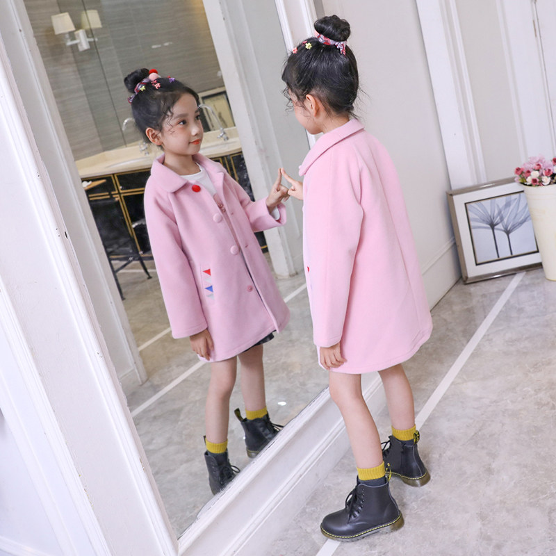 Girls' woolen coat autumn and winter wear 2022 new children's middle-aged children's Korean version of the Western style medium and long version of the princess woolen coat
