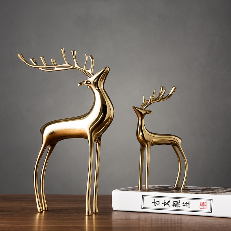 Copper Deer, a pair of round table ornaments, round table welcome pine dance, crane head-up dance, crane overlook, crane miss dance, crane three-piece set of round table ornaments, qianli copper deer three-piece set