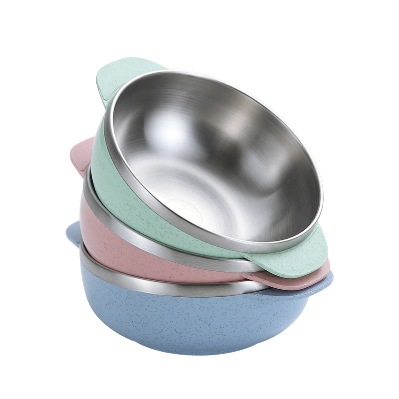 Baby soup bowl Baby stainless steel eating bowl Fall-proof and anti-scalding binaural cute round primary school tableware set