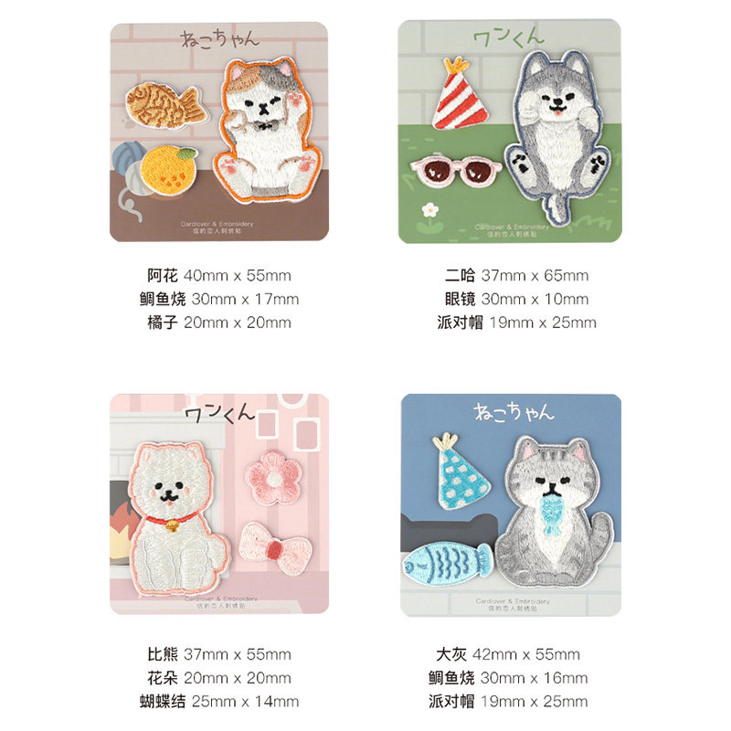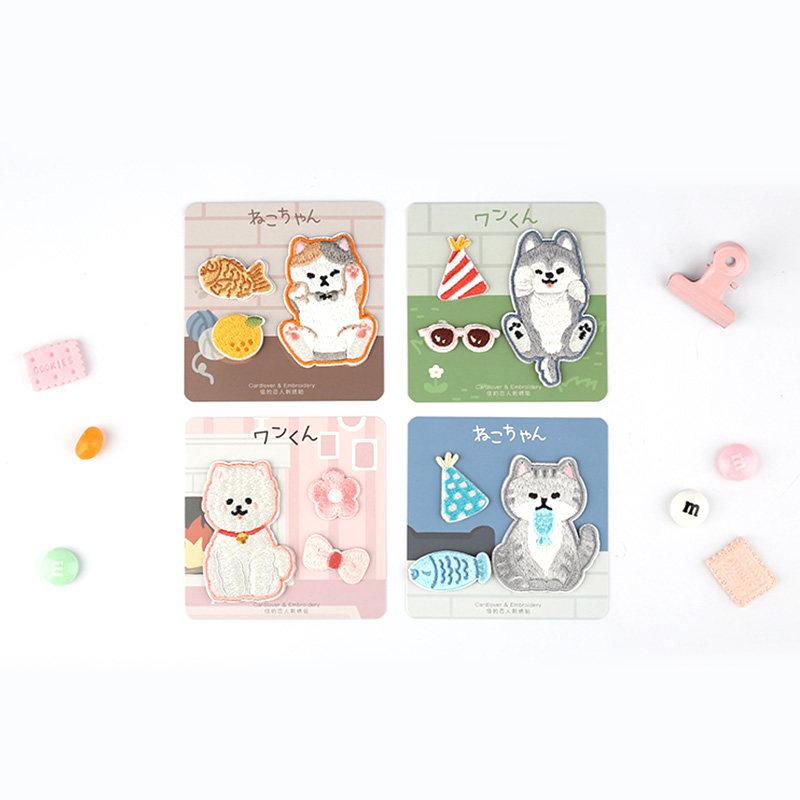 Cute kitty puppy embroidered with self-adhesive cloth with diy hand account donut bag shoes mobile phone protective shell decoration stick