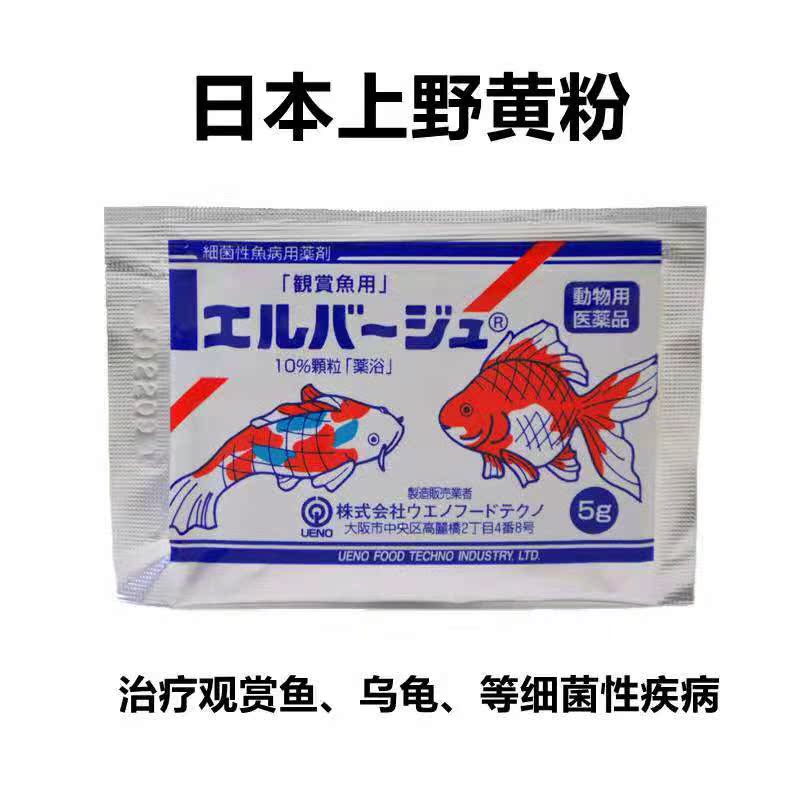 Japan's Ueno yellow powder ornamental fish medicine fish tank bactericidal medicine goldfish koi rotten tail rotten fin white spot disease powder