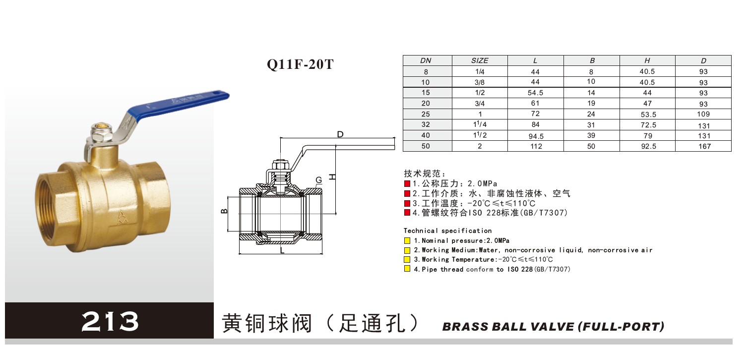 Emekke 213 brass foot diameter large flow caliber ball valve DN15 DN20DN25 DN20DN25 DN50 DN50