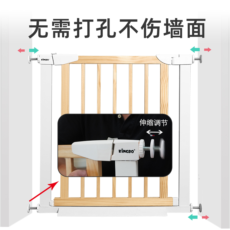 KINGBO solid wood children's safety door fence Stairway fence Baby fence Free hole pet isolation fence pole