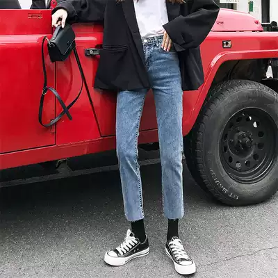 Jeans women's straight loose 2021 new spring and summer small man high waist thin wild wide leg black pants