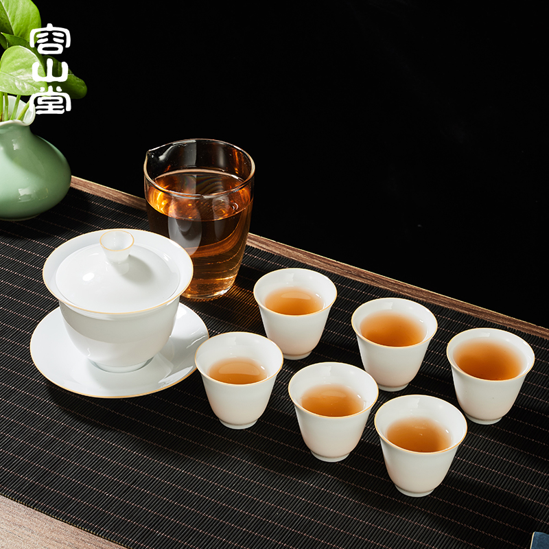 Rongshan Hall White Porcelain Kongfu Tea Furniture Suit Home Whole Set Cover Bowl Tea Cup Fair Cup Office Tea Ceremony box loading-Taobao