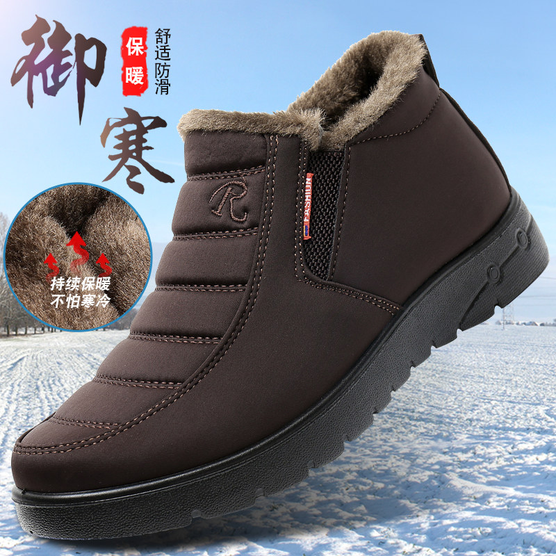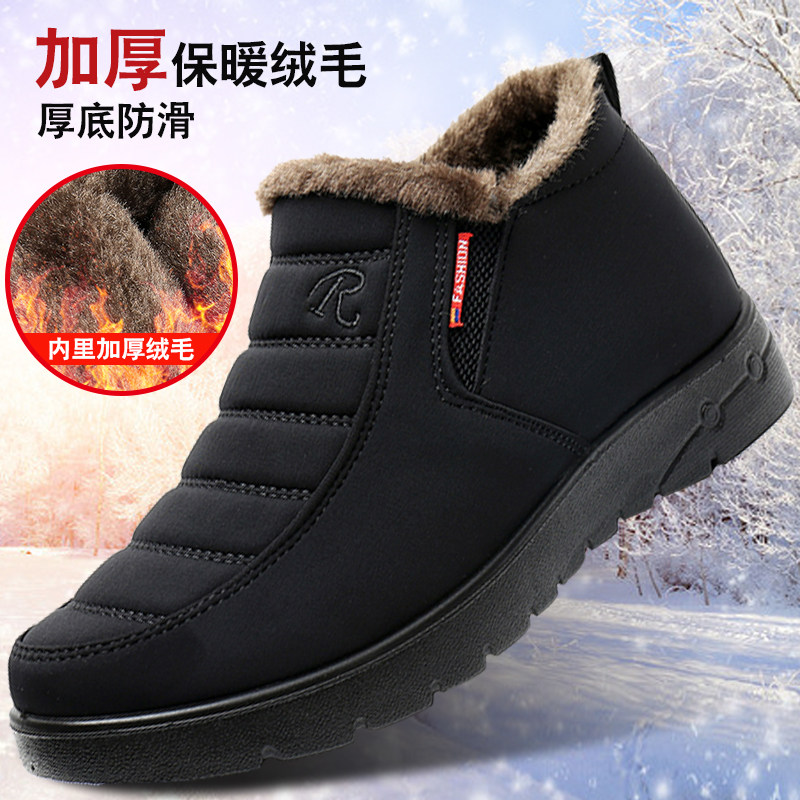 Old Beijing cloth shoes men's winter old men's cotton shoes plus velvet thick warm middle-aged and elderly men's shoes non-slip soft bottom dad shoes
