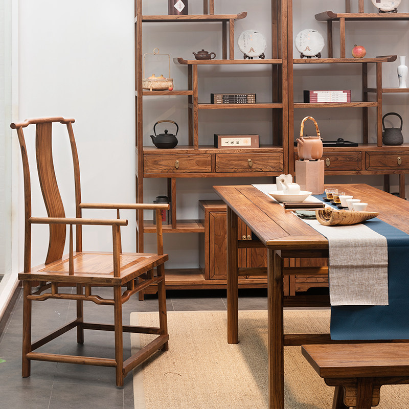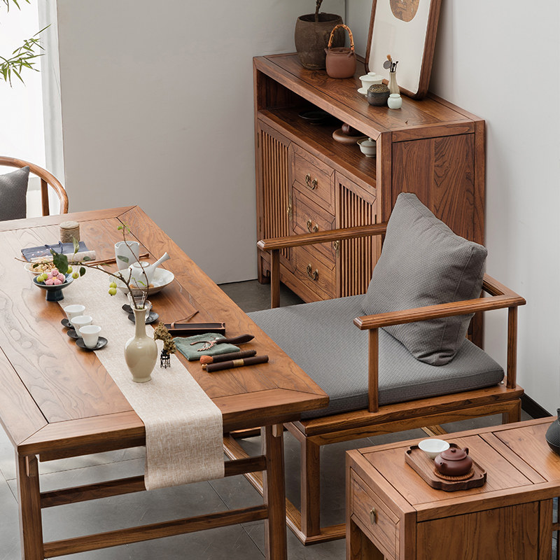 New Chinese solid wood tea table Old elm tea table Chinese antique calligraphy table Zen tea table and chair combination tea room furniture