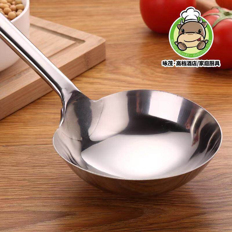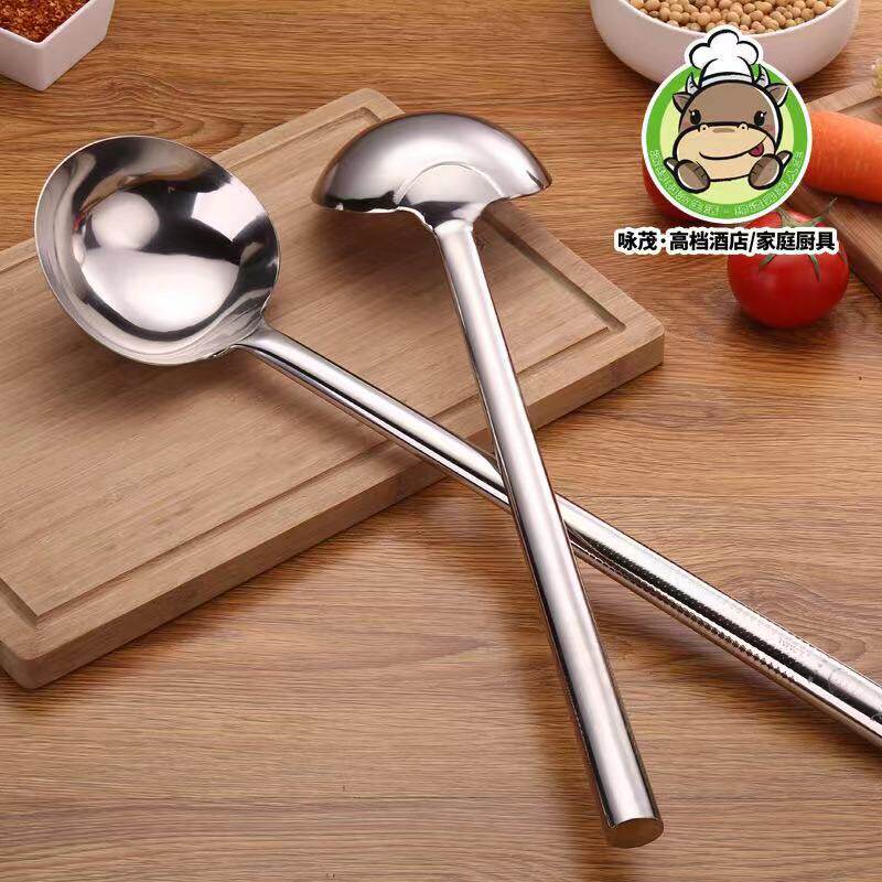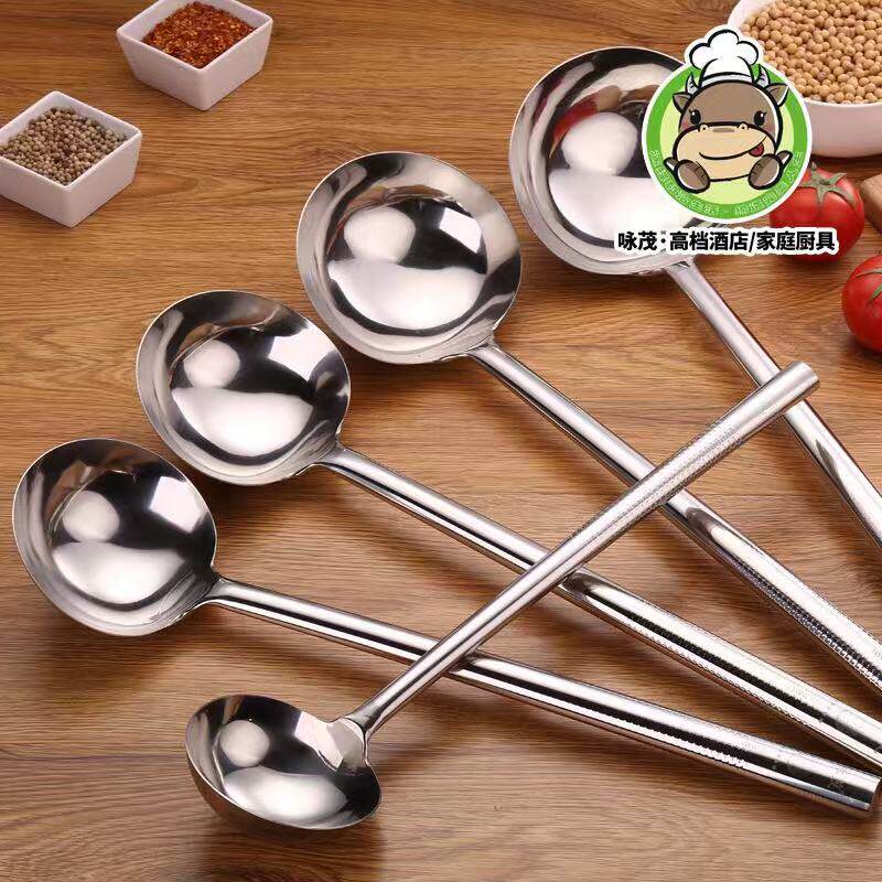 Stainless steel frying spoon thickened long handle large soup spoon Commercial hotel chef special kitchen 8 two pot spoons old horse spoon